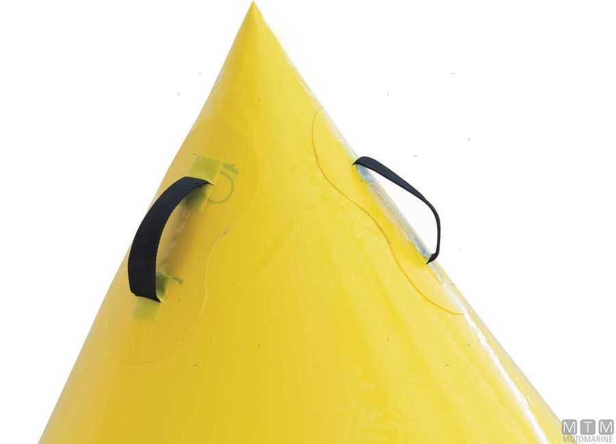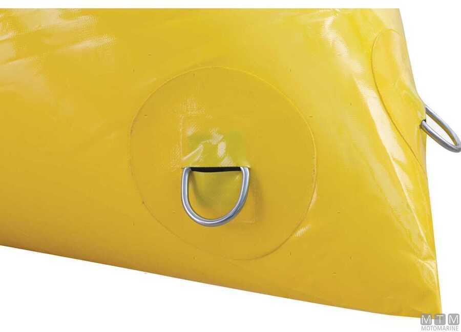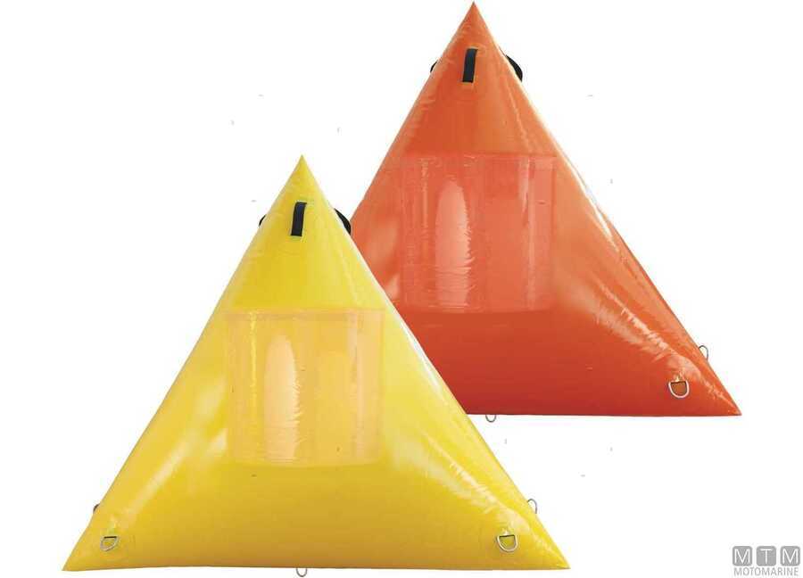 Boe da regata gonfiabili in Poliestere 1000D spalmato PVC molto resistente e robusto. Dotate di valvola di gonfiaggio e sgonfiaggio veloce e di 7 anelli in Acciaio Inox alla base che garantiscono un fissaggio al piombo sicuro e resistente a qualunque condizione meteo. Non necessitano di alcuna rete data la robustezza del materiale. Complete di maniglie per un facile trasporto e posizionamento e di 3 tasche in PVC per l'esposizione di eventuali messaggi pubblicitari.