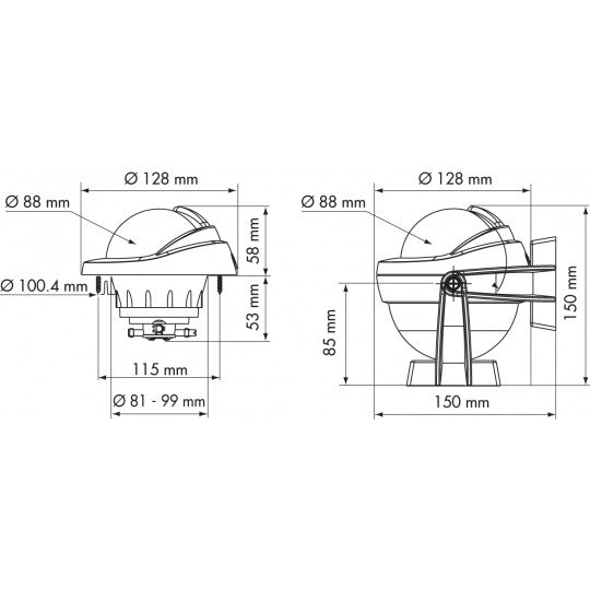 Bussola Offshore 95 Ø apparente mm. 81. Rosa con graduazione ogni 5°, per barche a motore da 6 a 10 mt., illuminazione di serie a 12-24 V LED. Installazione su staffa su piano orizzontale o verticale