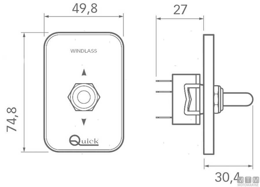 Pannello Quick comando Salpa Ancora UP-Down Quick12/24V con interruttore on-off-on che consente di azionare il salpa ancora.