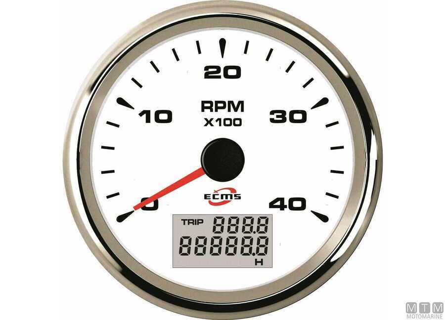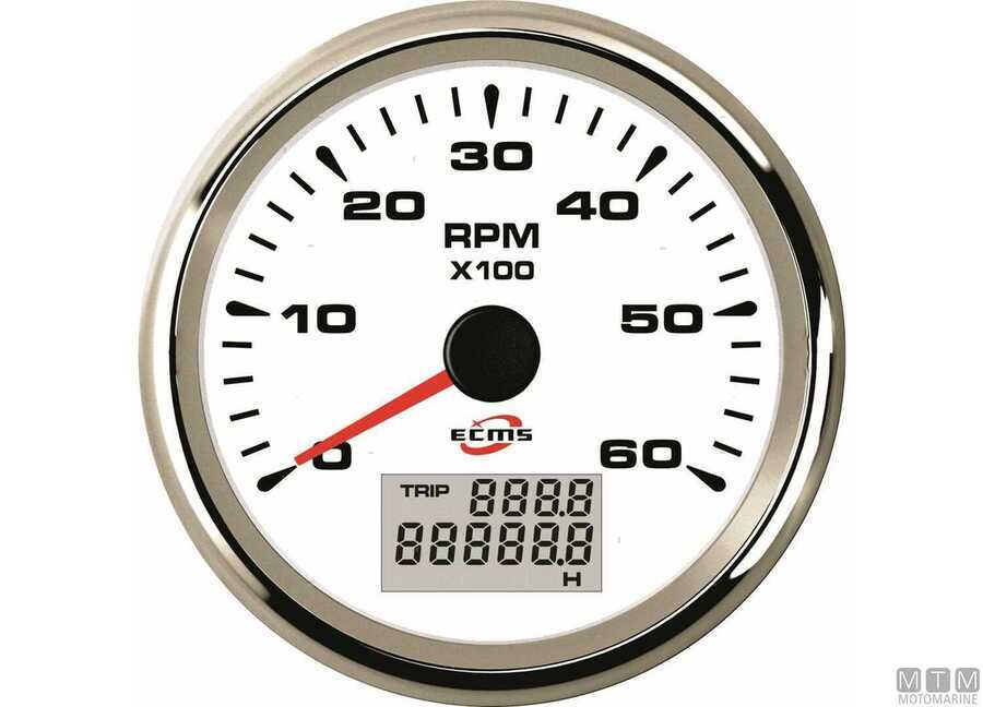 Contagiri/Contaore Ecms White Chrome 12/24V completi di cavetti e attacco Molex.