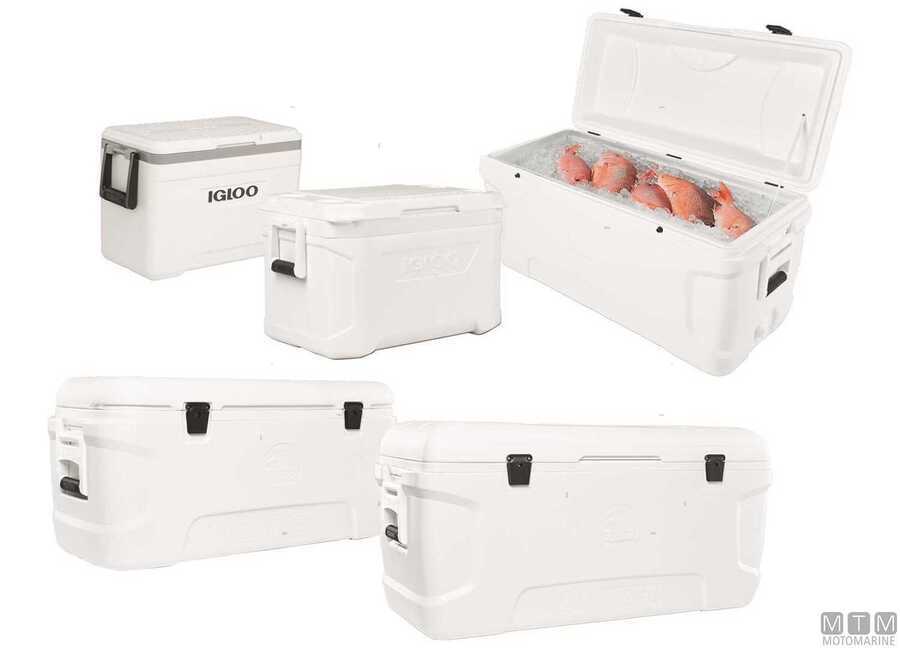 Ghiacciaie portatili Igloo progettate per uso nautico, ideali per la conservazione degli alimenti, del pescato o come vasche per esche vive. Isolamento in espanso THERMECOOL con cassa in ABS resistente UV e interno in polimero inodore. 150Q è provvista di doppio sportello di accesso.