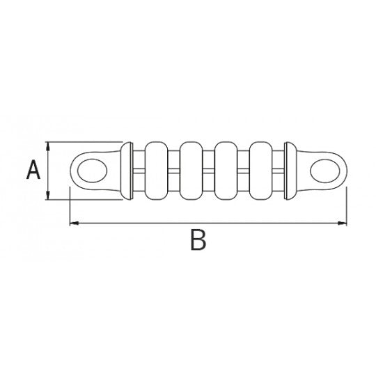 Molla ormeggio DOUGLAS MARINE in acciaio inox HR specifico silenziata da tappi anticigolio, è provvista di fine corsa antisnervamento e le particolari teste consentono una perfetta assialità durante la compressione.