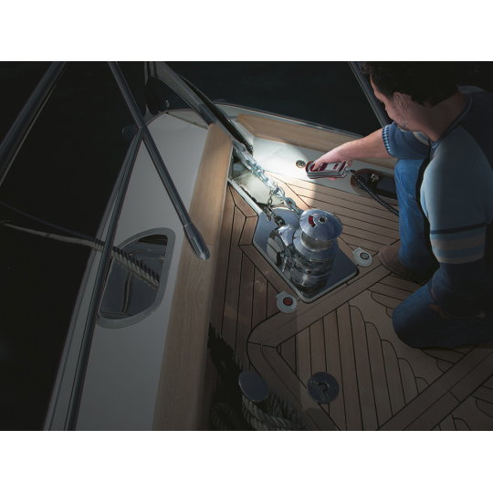 gruette, passerelle, scalette-bagno, salpa ancora, ecc... Realizzata con inserti in gomma per garantire elevata resistenza, durata, perfetta impermeabilità e una presa sicura. Cavo estendibile fino a 4,2 metri, completa di connettore stagno e staffa di supporto. Stagna IP67.