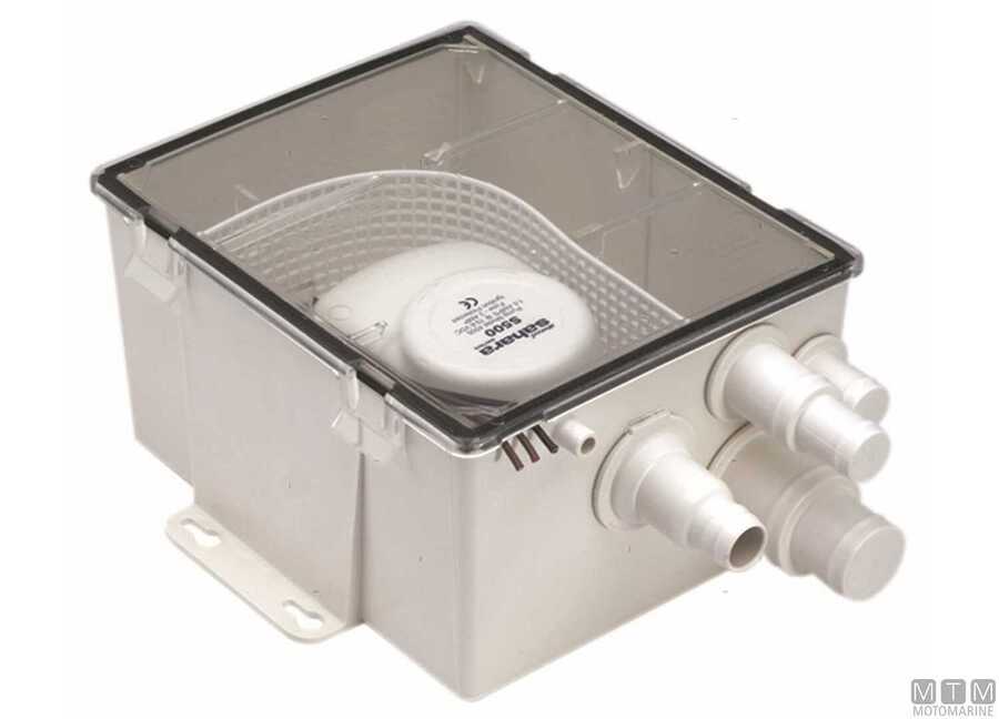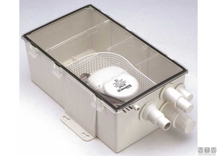 Pozzetto raccolta acque grigie e scarico doccia Attwood completo di pompa automatica di scarico, coperchio con guarnizione a tenuta stagna, sfiato d'aria e bocca di scarico da 3/4"(20 mm).