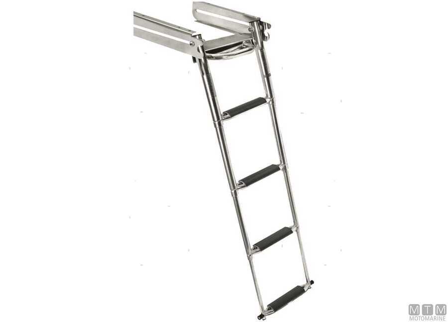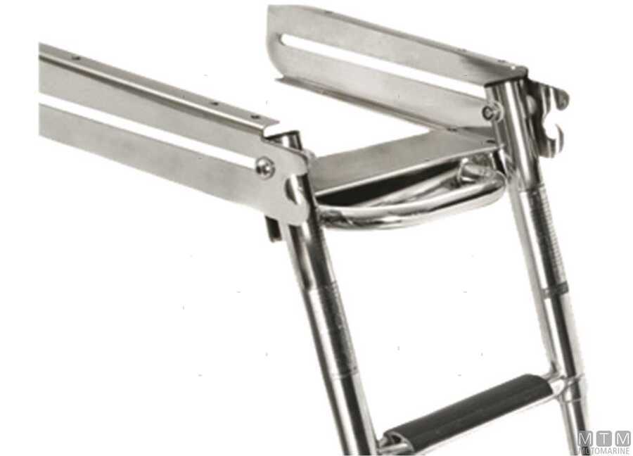 Scalette telescopiche in Acciaio Inox complete di gabbia e maniglia per facilitare la risalita. Montaggio a filo sotto plance e plancette. Gradini rivestiti per un maggiore comfort.