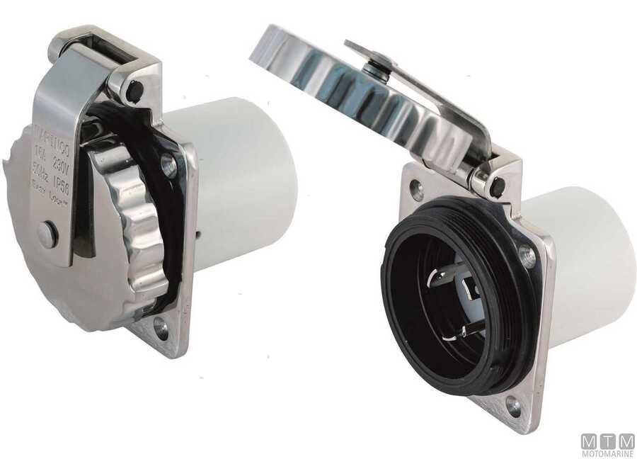 Prese quadre Marinco con cassa in Poliestere rinforzato e chiusura stagna in Acciaio Inox.