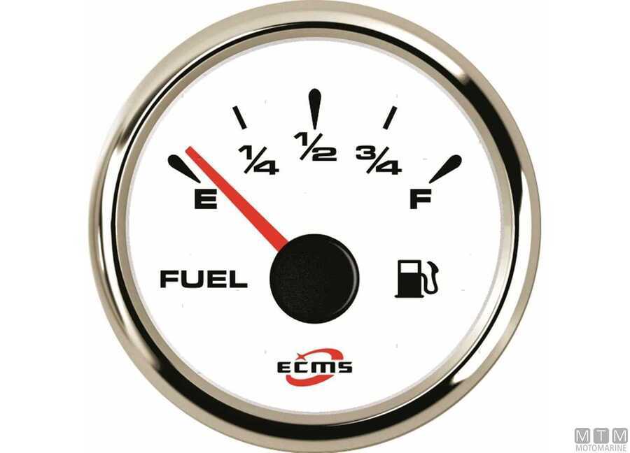 Strumentazione Ecms White Chrome 9-32V completa di cavetti con connettore Molex, cornice in Acciaio Inox 316 con finitura cromata e frontalino impermeabile IP67 con lente bombata anti-appannamento. Quadrante retroilluminato con luce LED personalizzabile in vari colori.