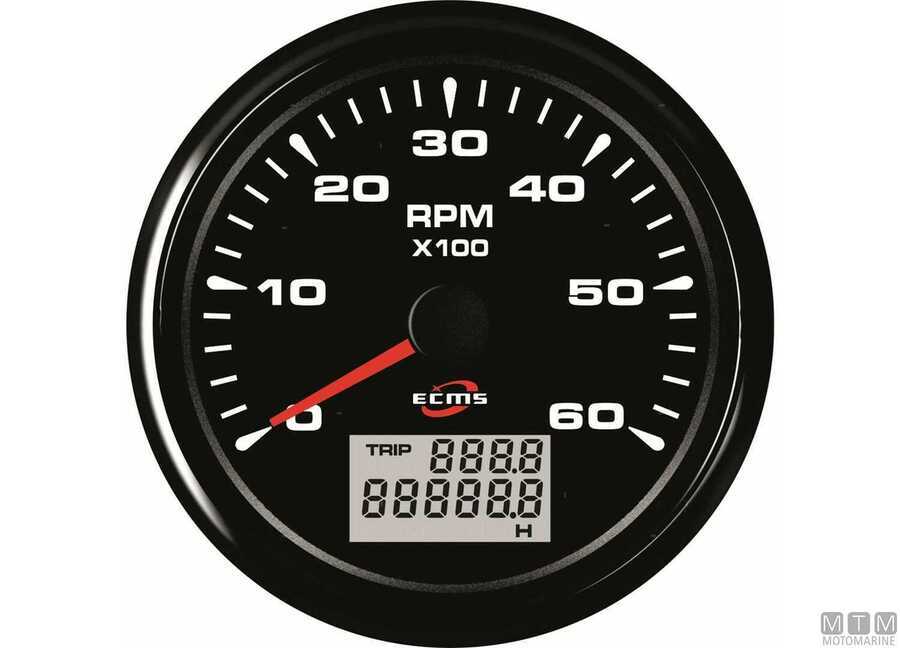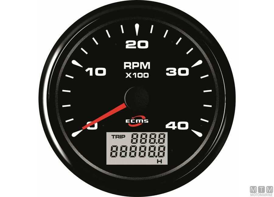 Contagiri/Contaore Ecms All Black 12/24V completi di cavetti e attacco Molex.