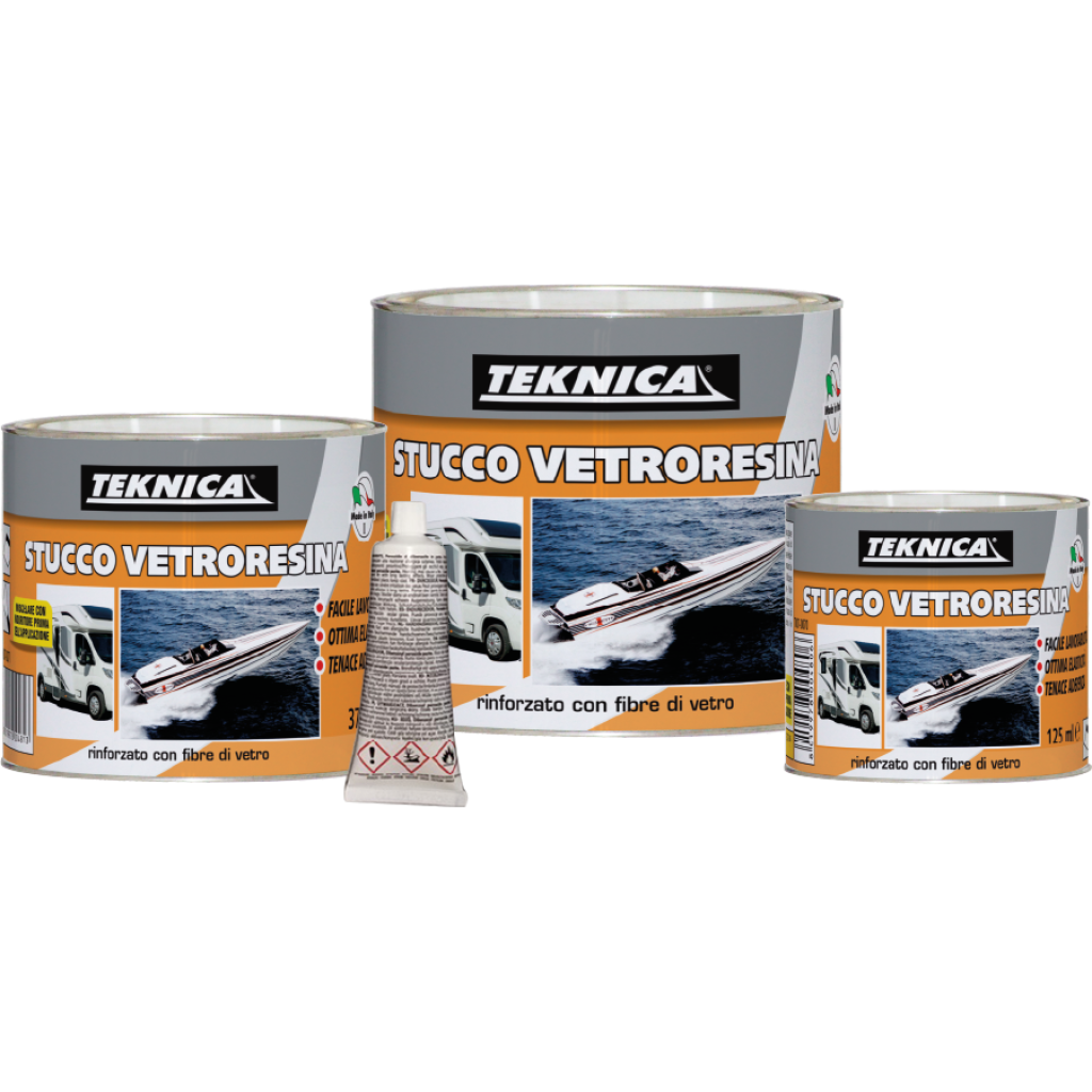 Stucco poliestere bicomponente rinforzato con fibre di vetro . Ideale per la riparazione di strutture in VTR . Elimina graffi scheggiature , buchi ed ammaccature . Ottima lavorabilità elasticità , assenza di aloni dopo la verniciatura , facile carteggiabilità , riempitivo ed adatto anche per rasature sottili .Confezione da 750 ml