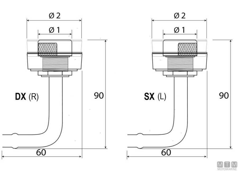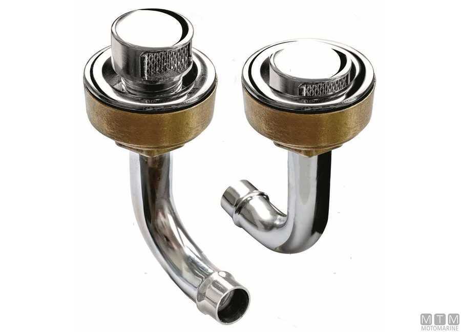 Sfiato incassato in Ottone Cromato con curva a 90° per serbatoi. Conforme alle norme R.I.Na.